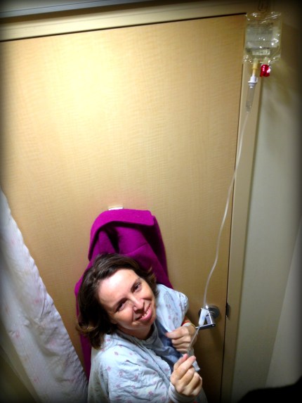 Yesterday was a really, really bleak day for Kathleen. We are speculating the Nulasta given so close to the end of the chemo just wipes her out. I could barely get her going this morning as it was a real struggle to get dressed and into the car for the 10am appt. As we suspected a long day, we packed IV gravol in our mini cooler bag. Good thing, as by 12:30 when we were waiting in imaging, the nausea was coming on strong. No where to go, other than the little change room. So, drugs in the closet. The old gals in the waiting room gave us a funny look coming out no doubt wondering what we were doing in there together for 15min. I should have given them a suggestive glance